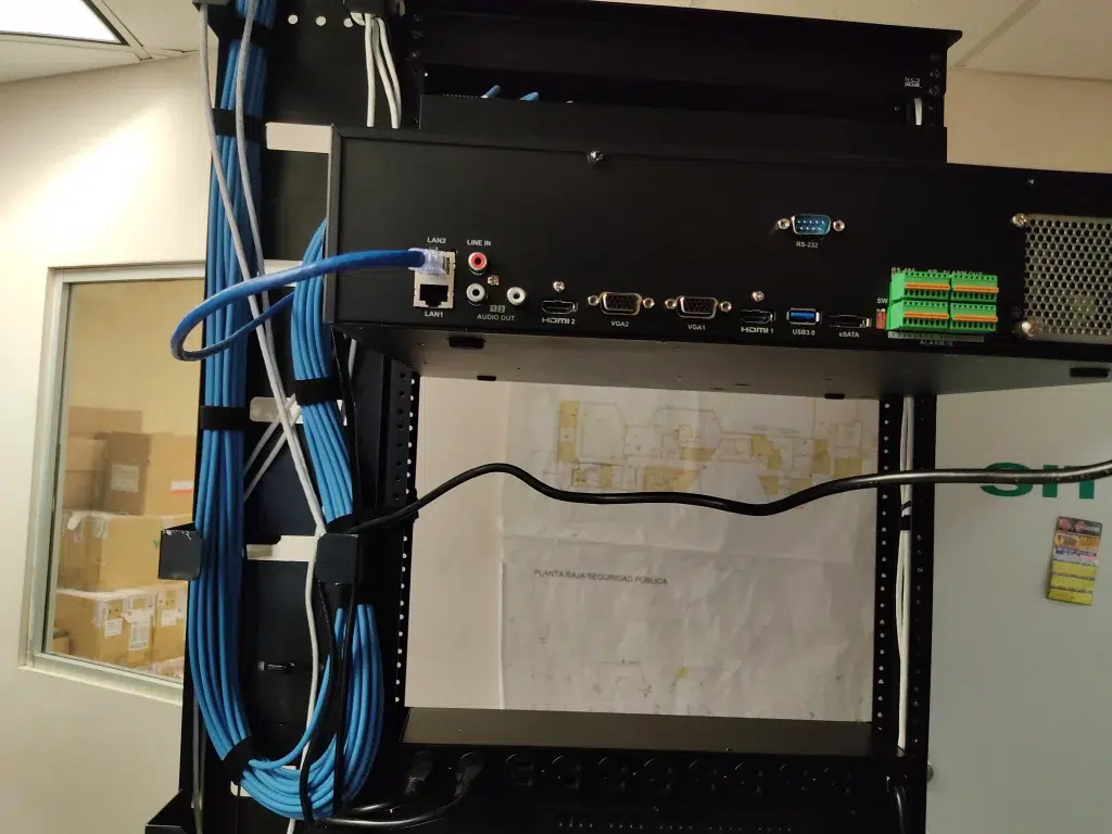 - Gestión Centralizada: Configuración de un NVR de 64 canales con capacidad 4K, interconectado mediante switches monitoreables PoE+ para una administración eficiente de la energía y los datos.